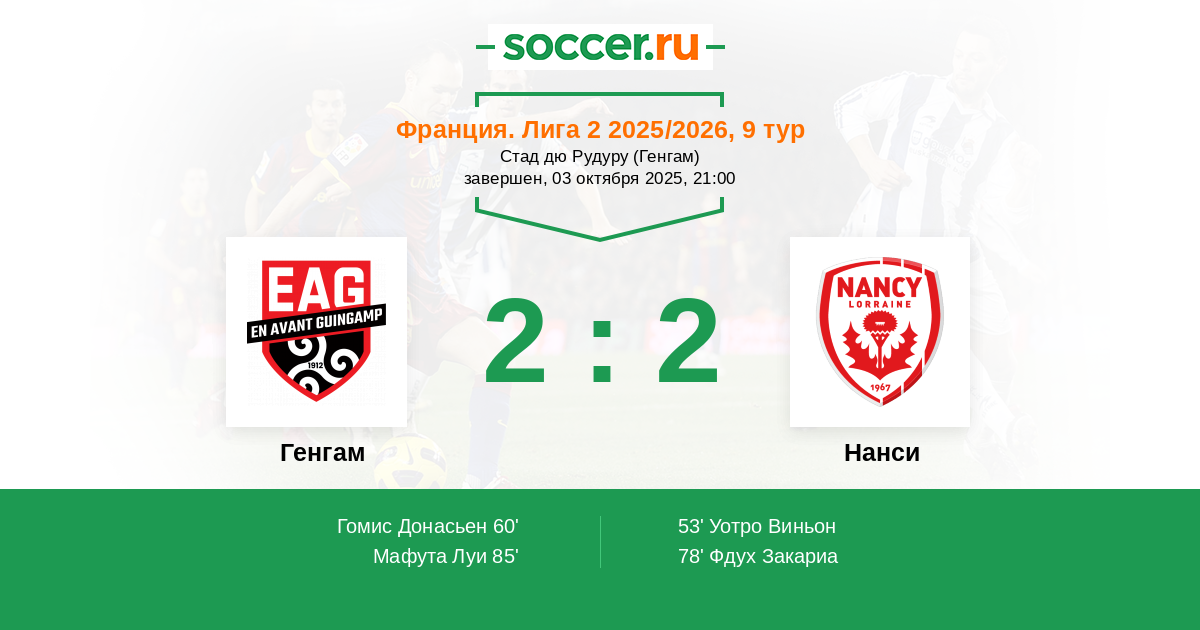 85' (2:2) Мафута Луи (9) (Оурега Драхго (23))