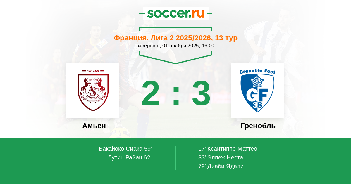 59' (1:2) Бакайоко Сиака (34)