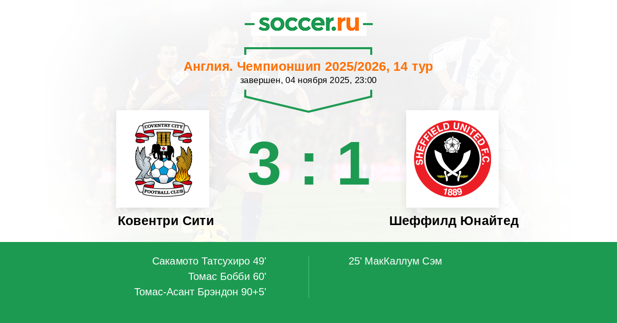 25' (0:1) МакКаллум Сэм (3) (Ми Бен (15))