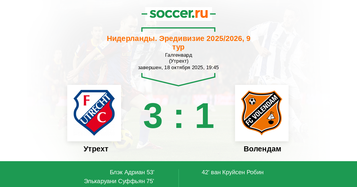 42' (0:1) ван Круйсен Робин (40) (Верман Хенк (9))