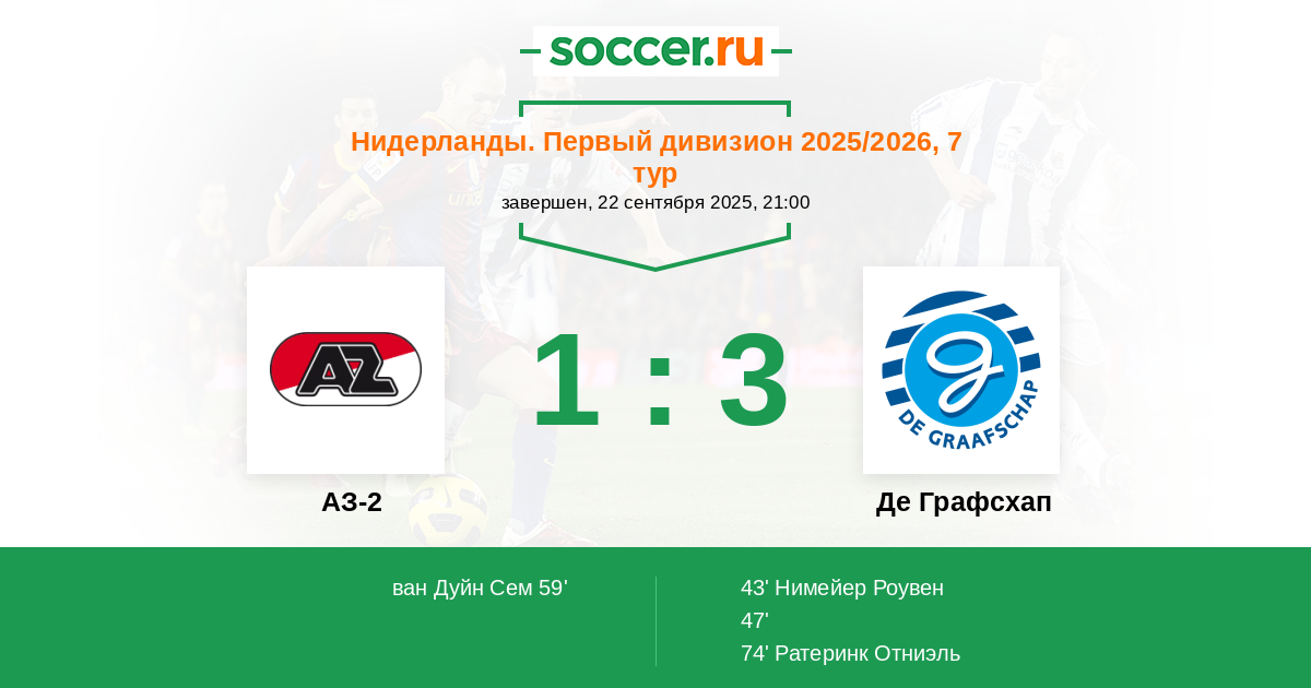 59' (1:2) ван Дуйн Сем (9) (Матийс Меню (3))