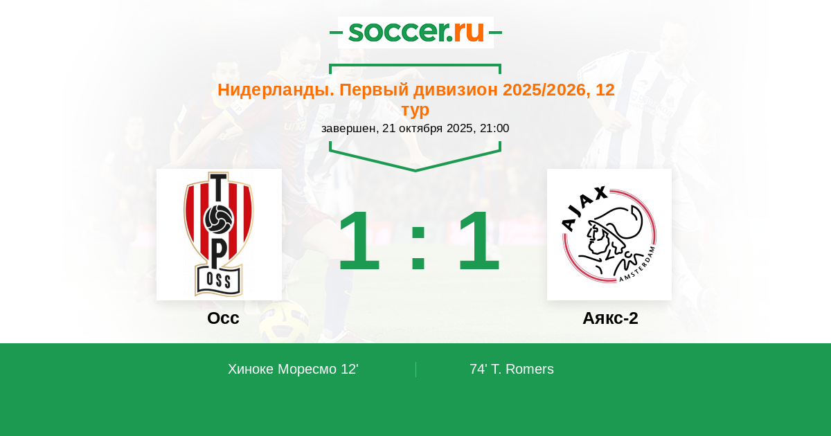 12' (1:0) Хиноке Моресмо (17)