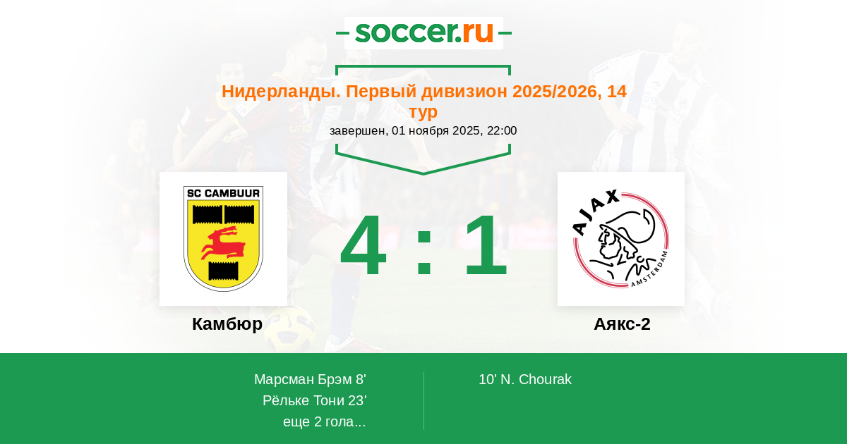 8' (1:0) Марсман Брэм (25) (Амофа Джамал (6))