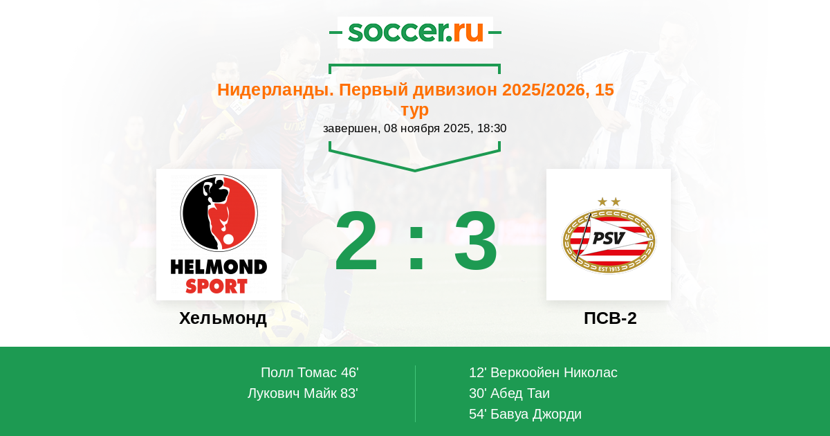 12' (0:1) Веркоойен Николас (10) (ван ден Берг Джоэл (8))