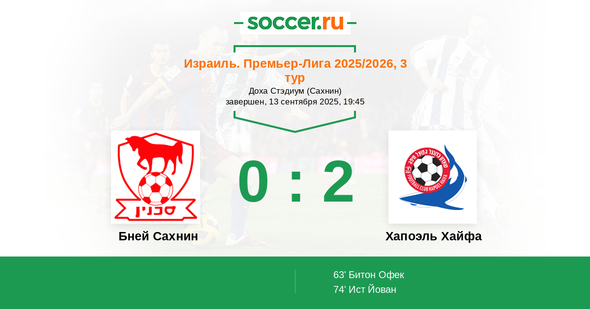 63' (0:1) Битон Офек (18) (Сабаг Наор (55))