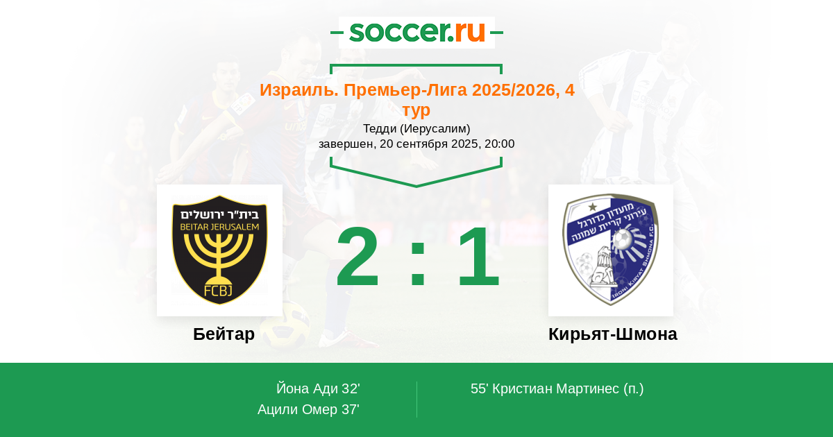 37' (2:0) Ацили Омер (77) (Мича Дор (15))