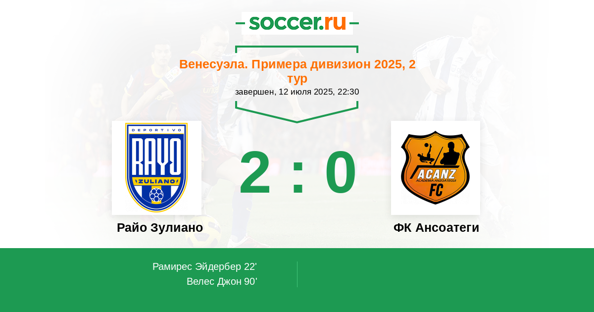 22' (1:0) Рамирес Эйдербер (7) (Очоа Хосе (23))