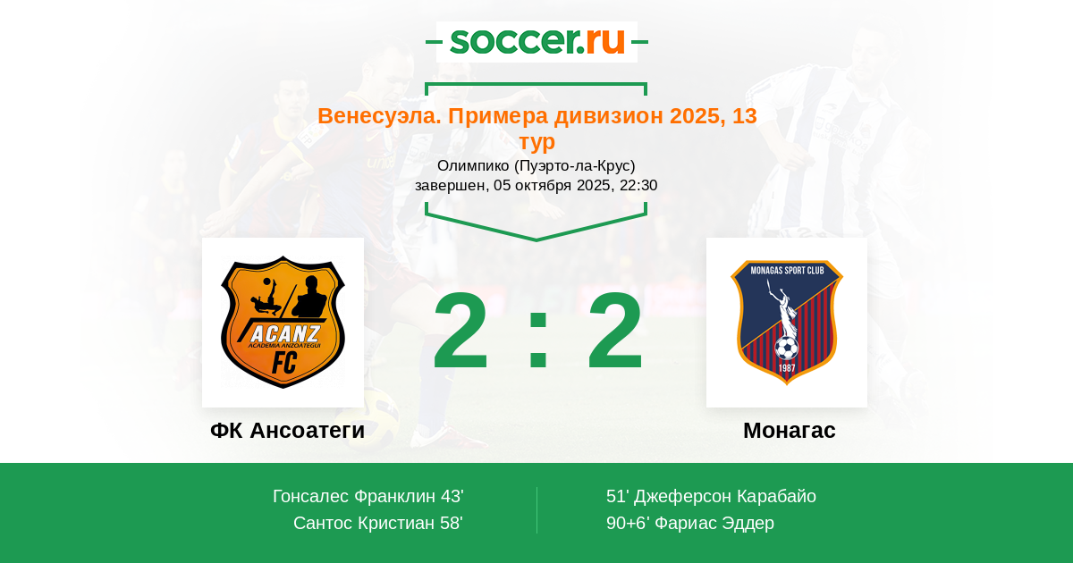 58' (2:1) Сантос Кристиан (80) (J. Lovera)