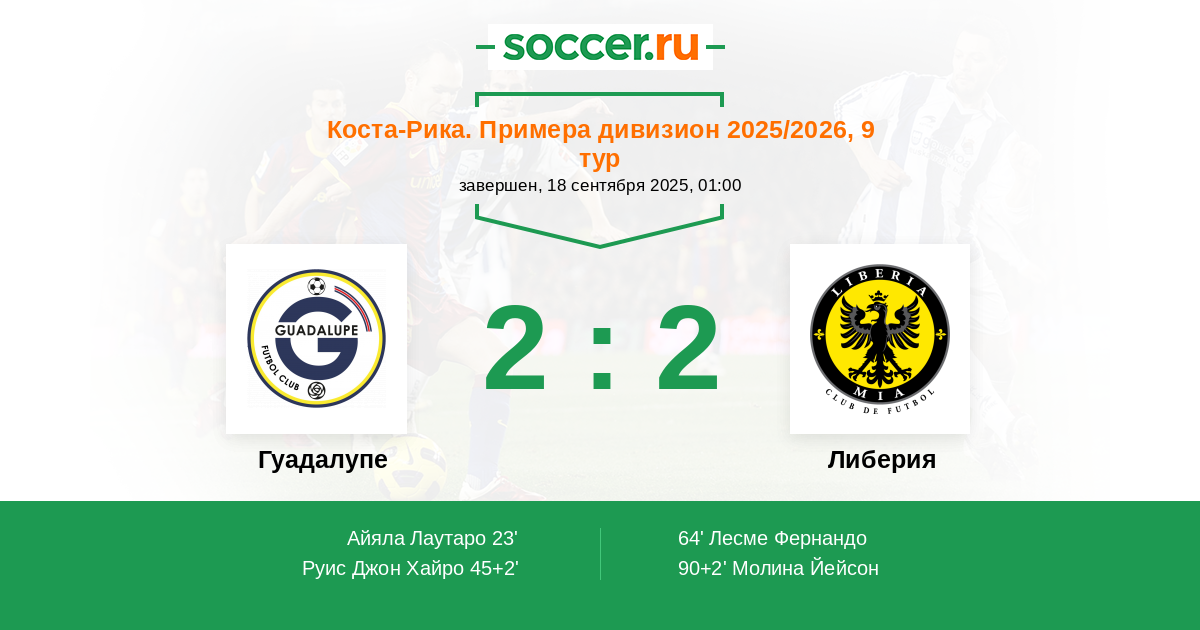 45+2' (2:0) Руис Джон Хайро (11)