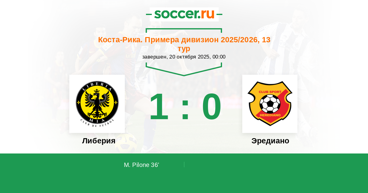 36' (1:0) Пилон Малкольм (20)