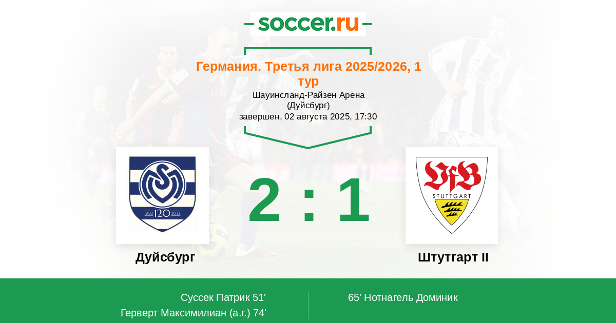 51' (1:0) Суссек Патрик (37) (Майер Штеффен (18))
