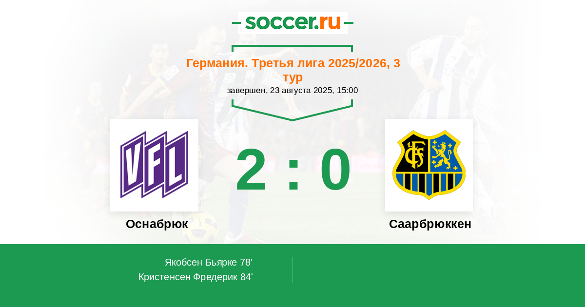 84' (2:0) Кристенсен Фредерик (3) (Кель Ларс (18))