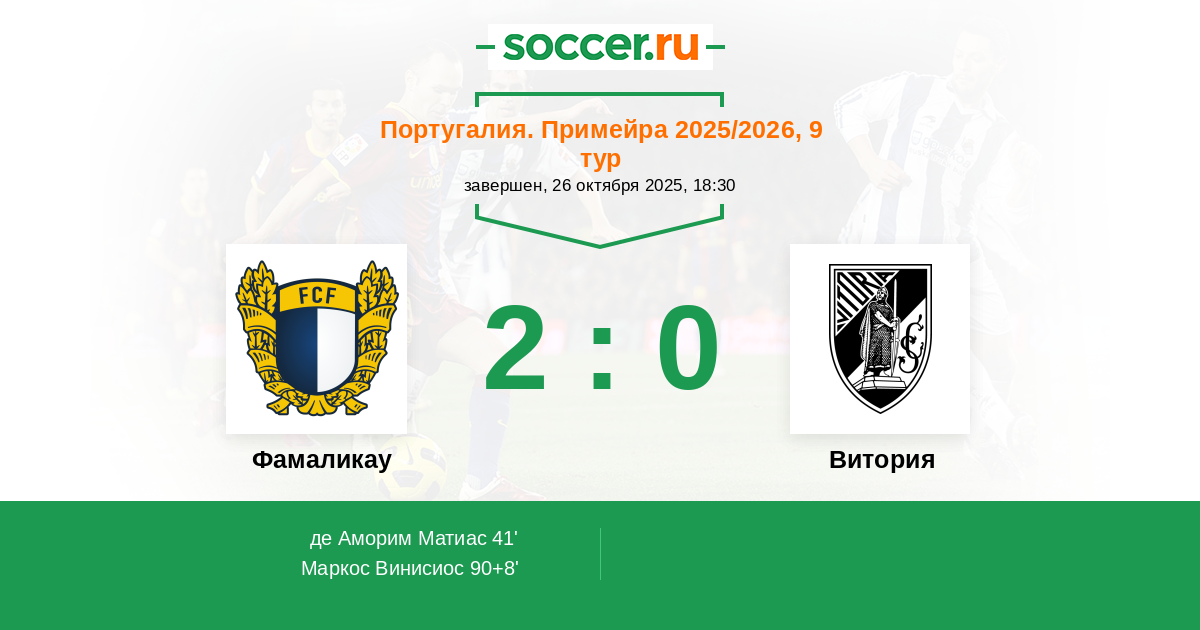 90+8' (2:0) Маркос Винисиос (7) (Диаш Жил (23))