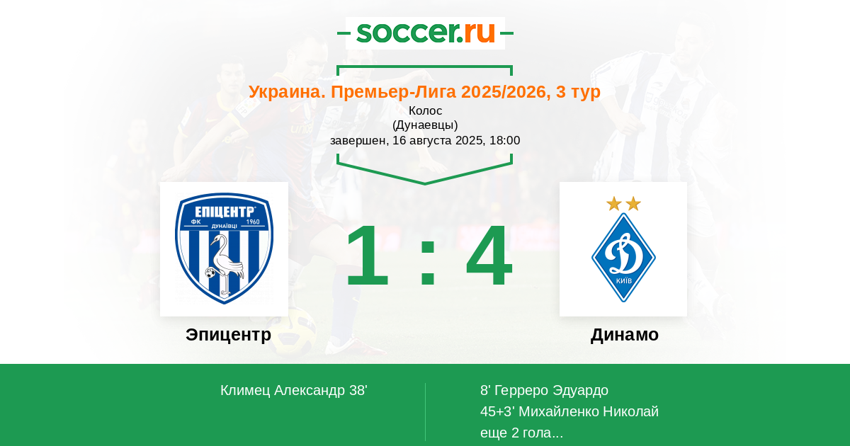 8' (0:1) Герреро Эдуардо (39) (Михайленко Николай (91))
