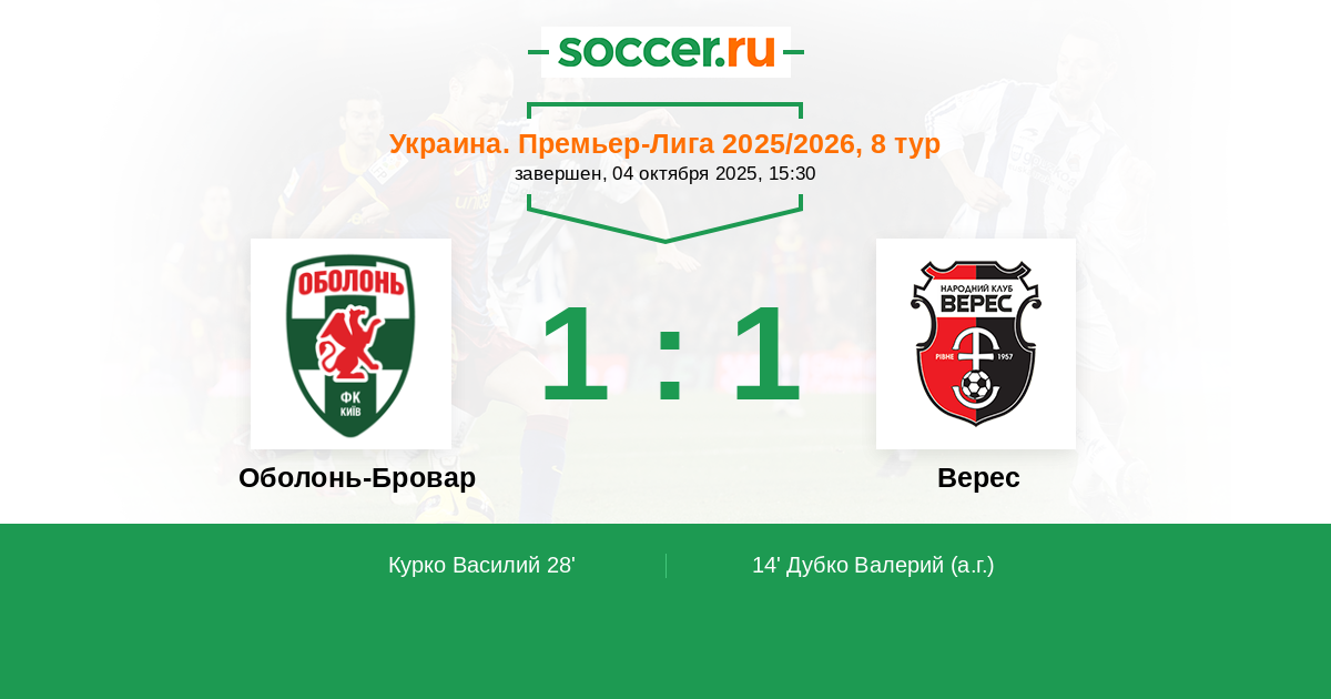 14' (0:1) Автогол Дубко Валерий (37)