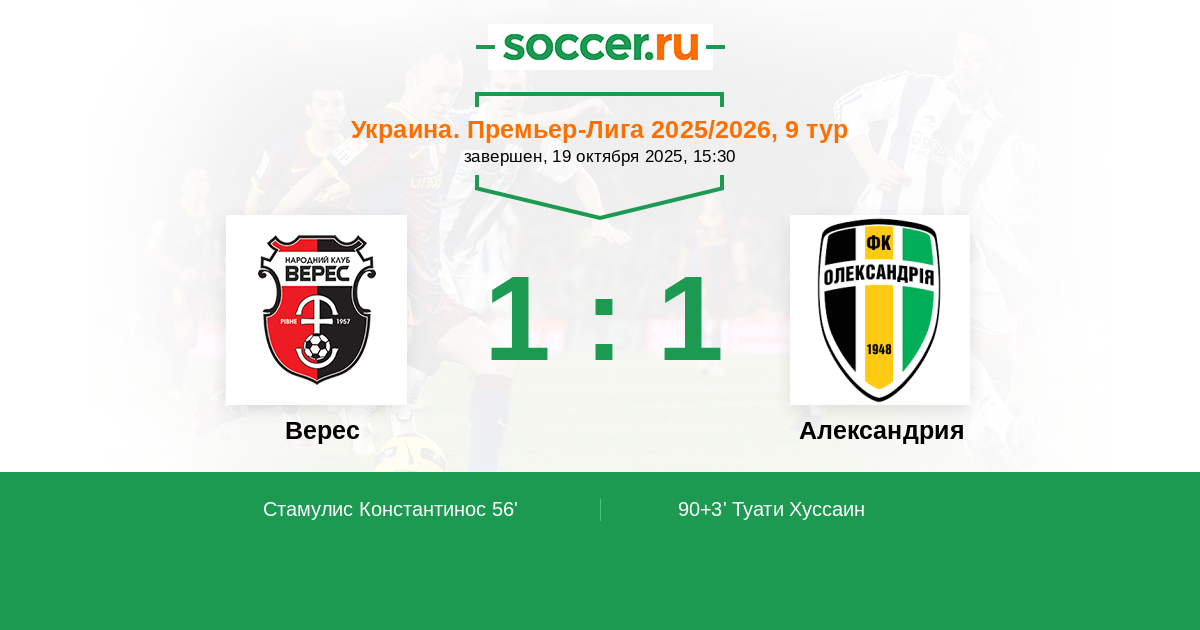 90+3' (1:1) Туати Хуссаин (24) (Булеца Сергей (8))