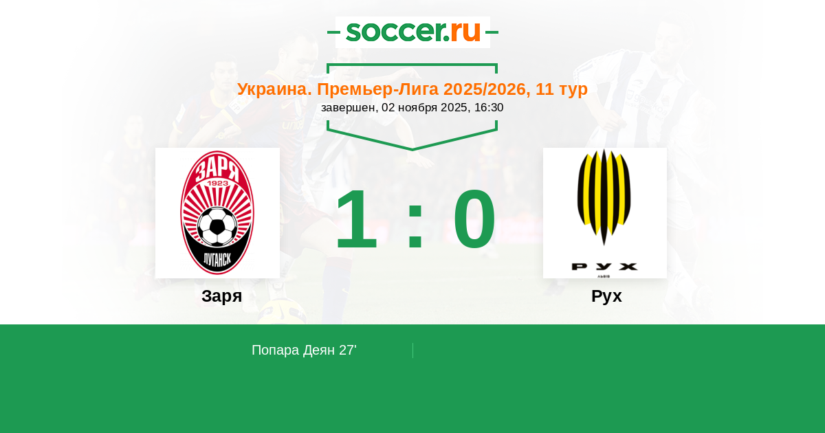 27' (1:0) Попара Деян (6) (Вантух Роман (47))
