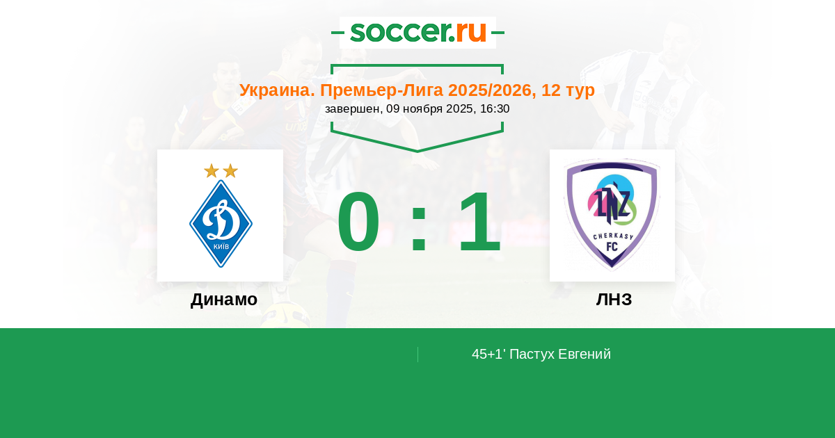 45+1' (0:1) Пастух Евгений (19)