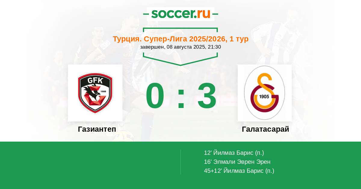16' (0:2) Элмали Эврен Эрен (17) (Йилмаз Барис (53))