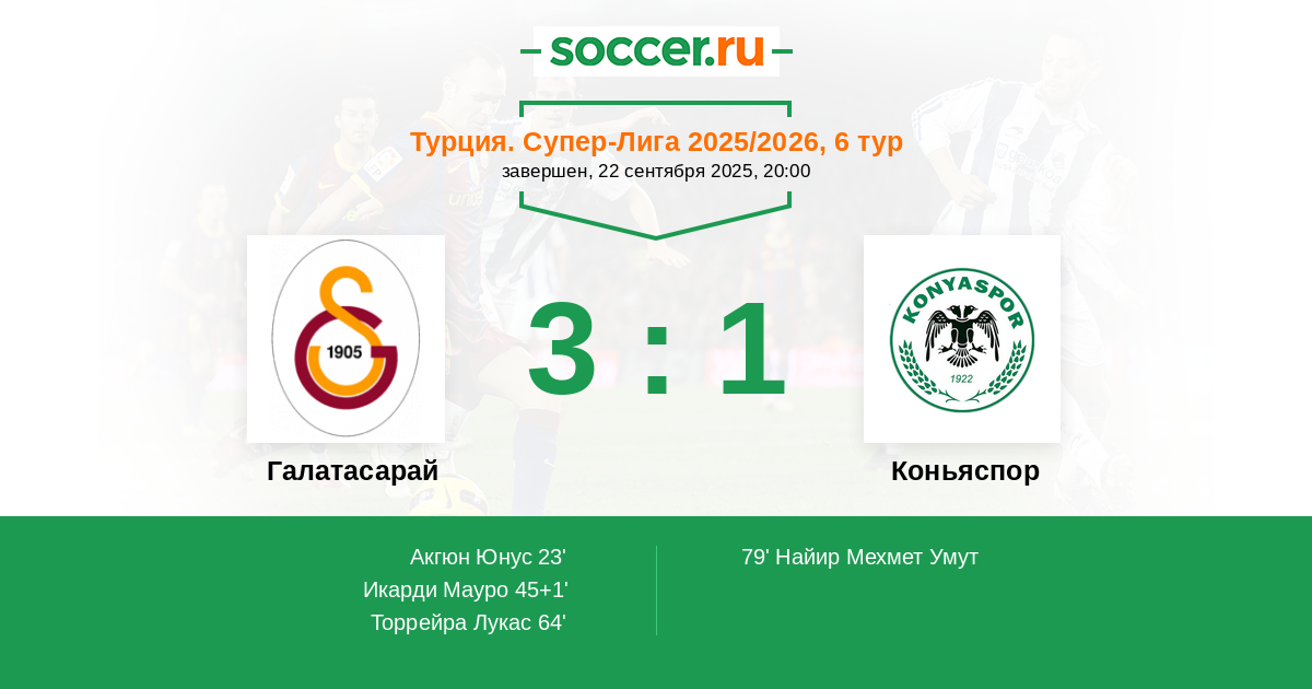 45+1' (2:0) Икарди Мауро (9) (Акгюн Юнус (11))