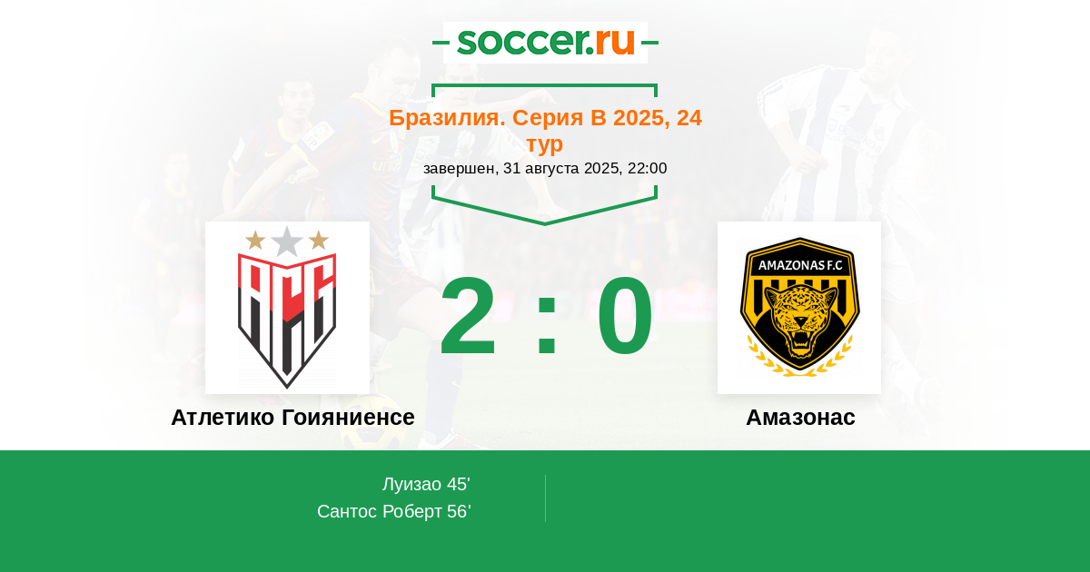 56' (2:0) Сантос Роберт (10) (Келвин (18))