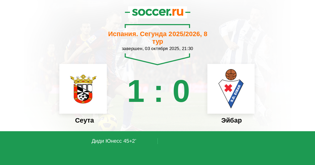 45+2' (1:0) Диди Юнесс (5) (Куки (8))