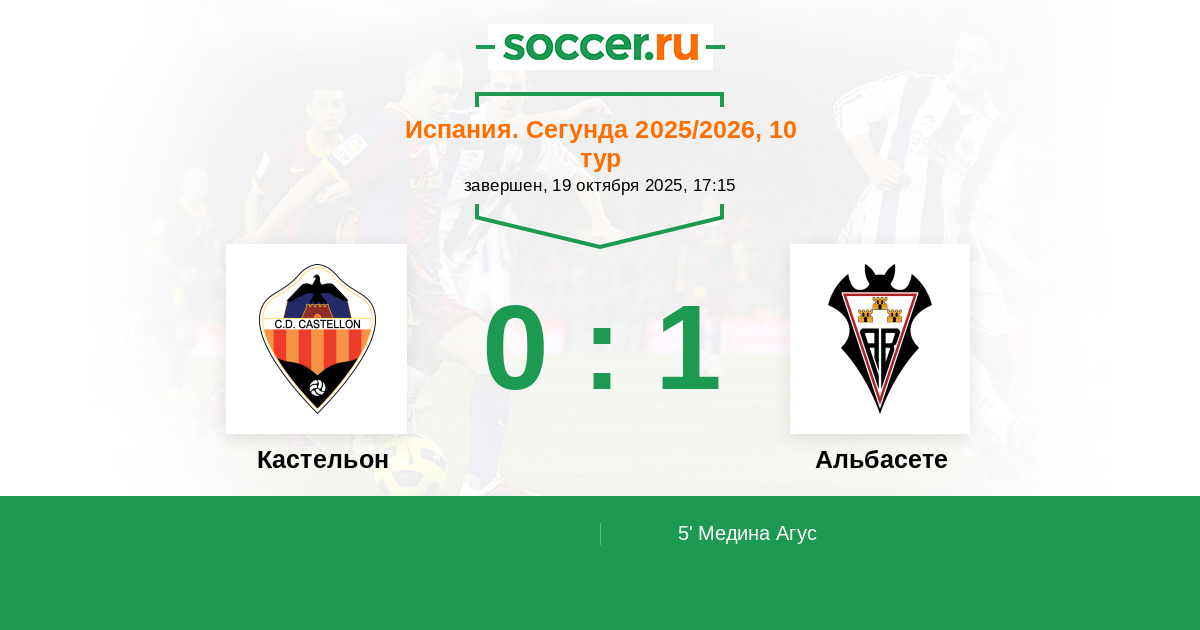 5' (0:1) Медина Агус (4) (Нева Карлос (21))
