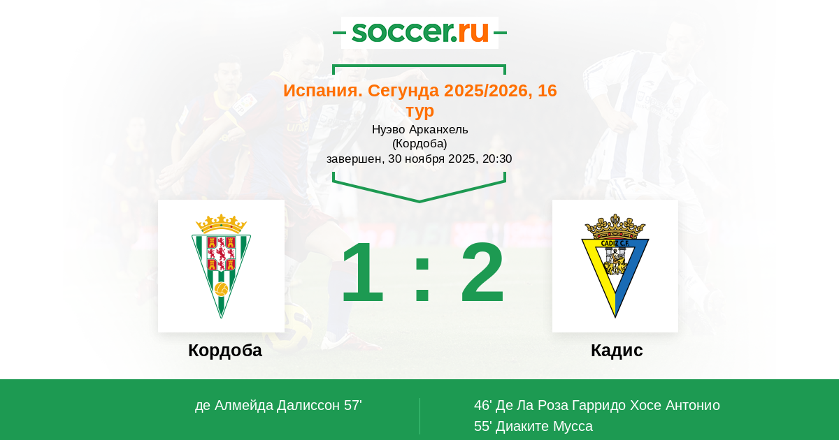 57' (1:2) де Алмейда Далиссон (19) (Муньос Карлос (22))