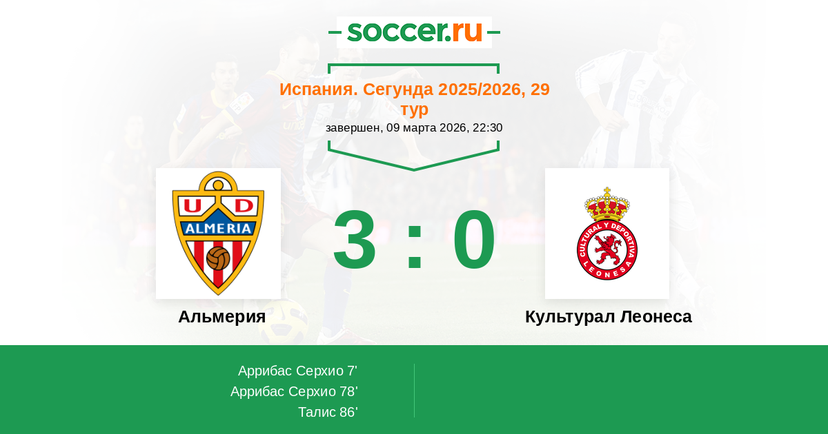 78' (2:0) Аррибас Серхио (11)