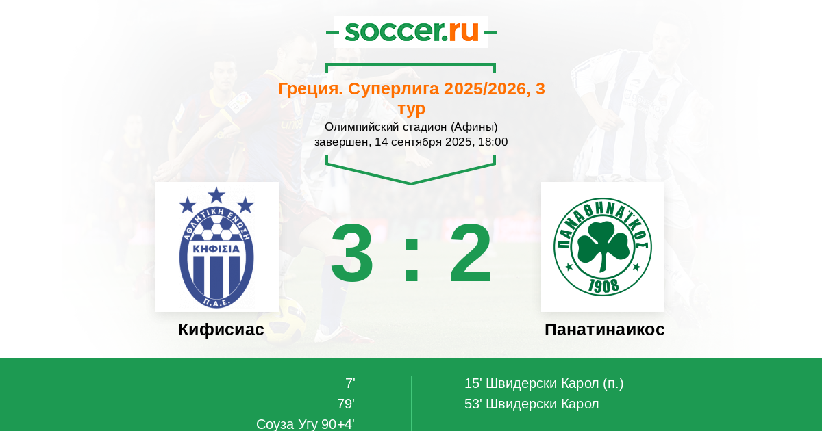 Запасные: 1 Ксенопулос Василис, 4 Ботиа Альберто, 77 Смпокос Манолис (с 83'), 5 Петков Алекс (с 82'), 20 Диас Хорхе (с 69'), 60 Константакопулос Георгиос, 32 Эскивель Матиас, 46 Рукунакис Константинос, 14 Джонсон Эбох Тимипер (с 69'), 8 Цимас Панайотис, 70 Мусиолик Себастьян, 72 Христопулос Апостолос