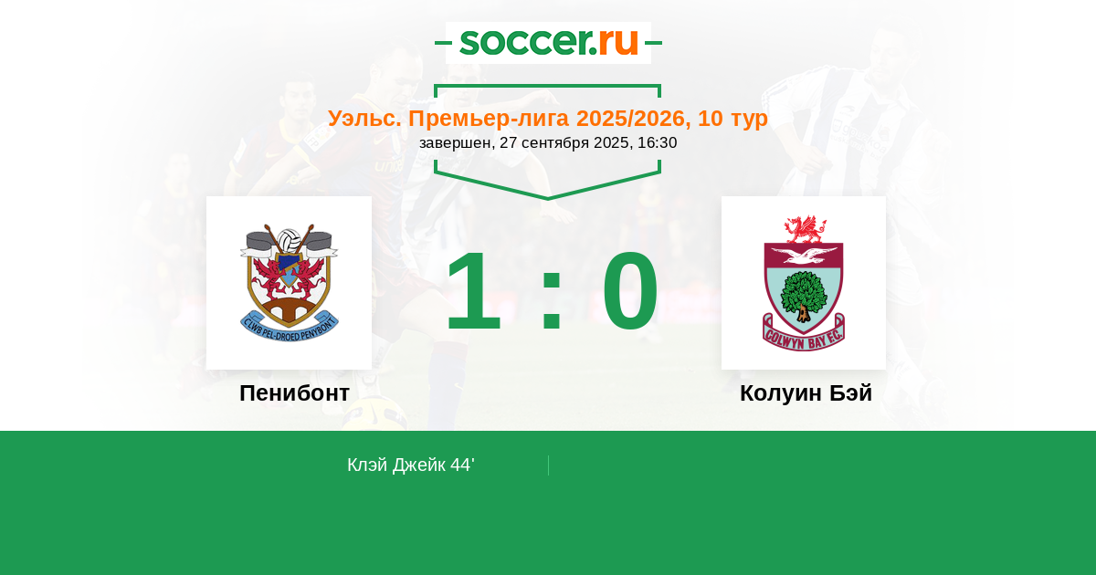 44' (1:0) Клэй Джейк (15)