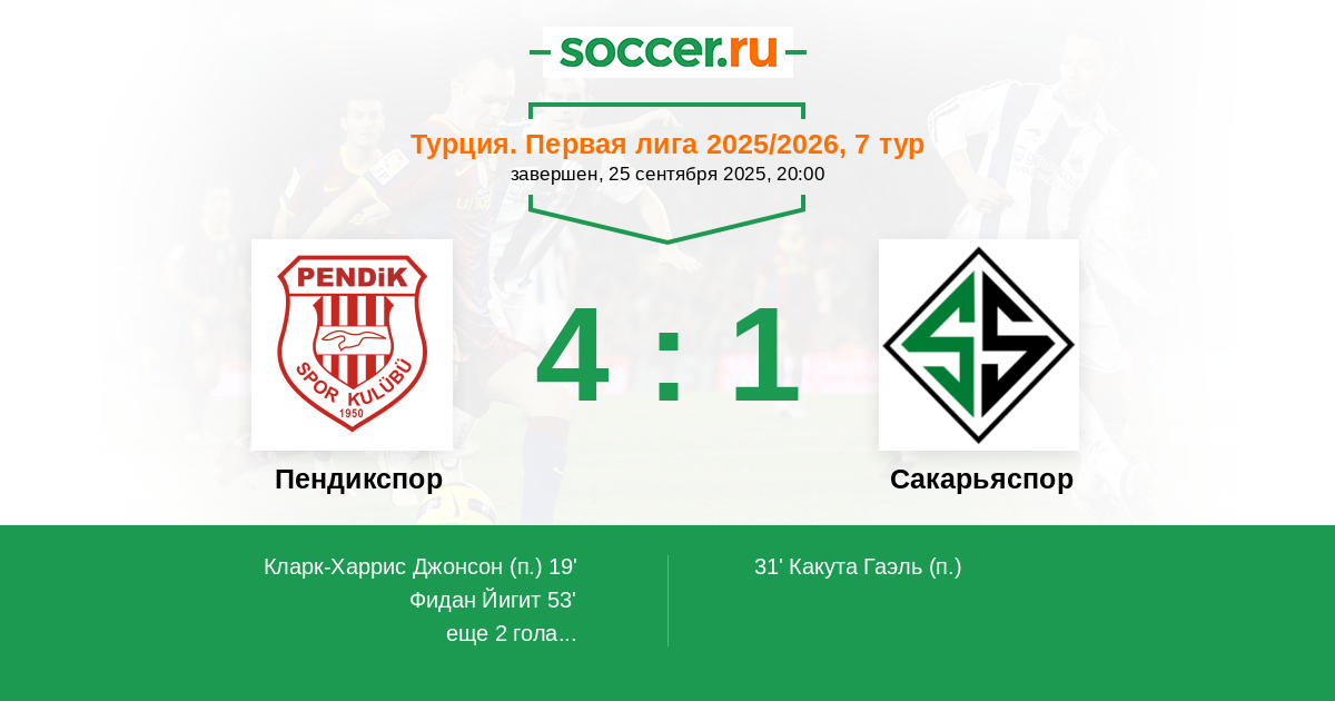 53' (2:1) Фидан Йигит (88) (Уилкс Маллик (10))