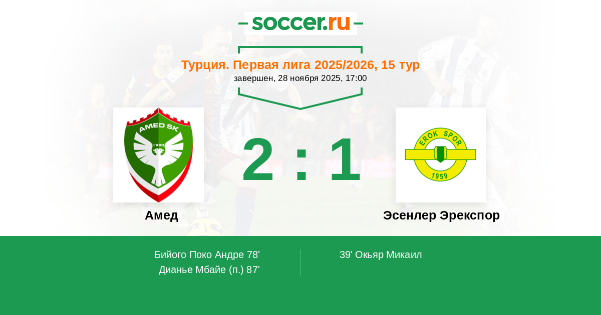 39' (0:1) Окьяр Микаил (5) (Чатакович Хамза (7))