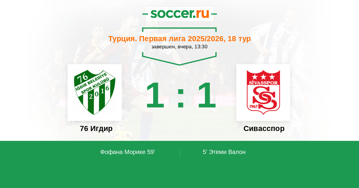 5' (0:1) Этеми Валон (27) (Чифтчи Угур (58))