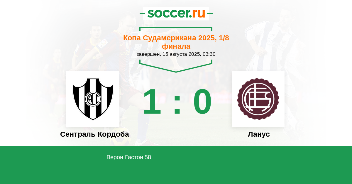 58' (1:0) Верон Гастон (10) (Флорентин Хосе (25))