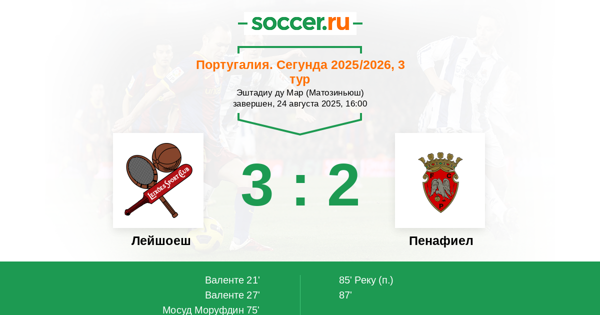 27' (2:0) Валенте (91) (Агра Сальвадор (11))