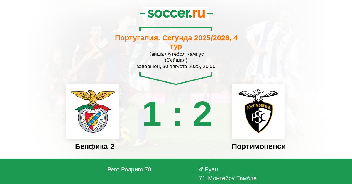 71' (1:2) Монтейру Тамбле (9)