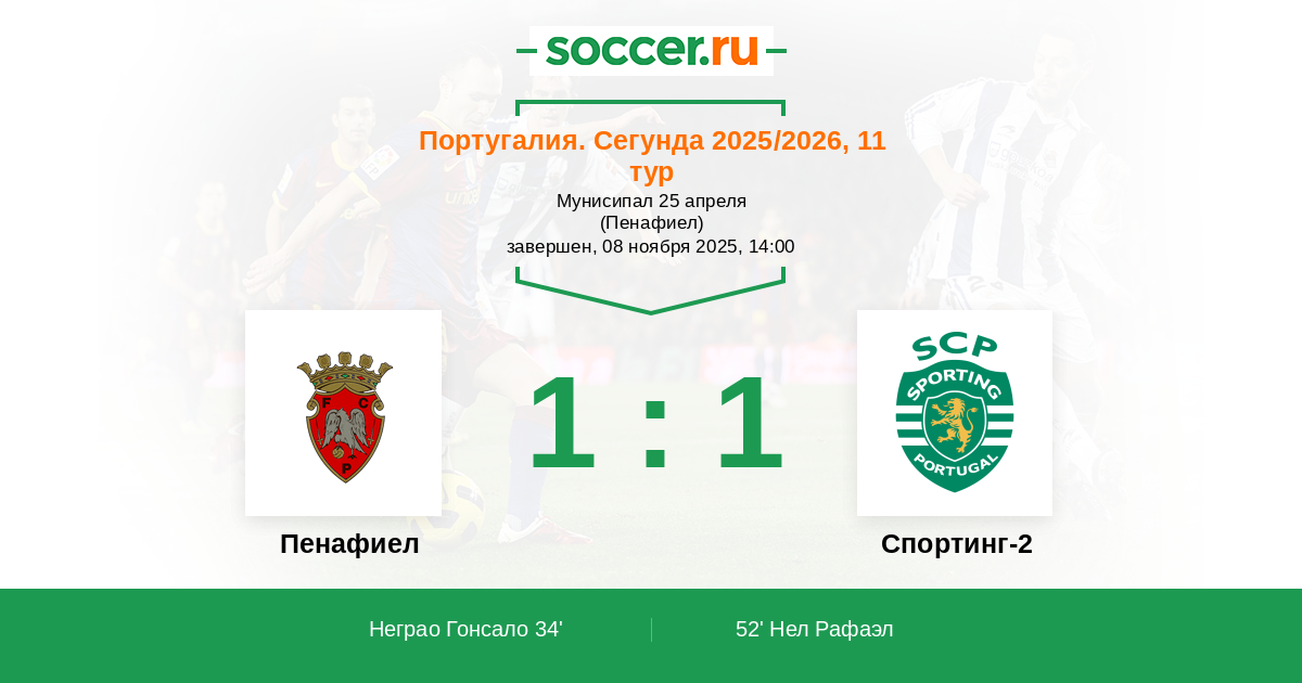 52' (1:1) Нел Рафаэл (90) (Силва Жозе (55))