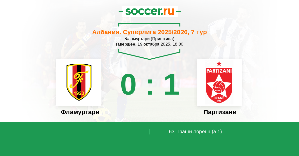 63' (0:1) Автогол Траши Лоренц (19)