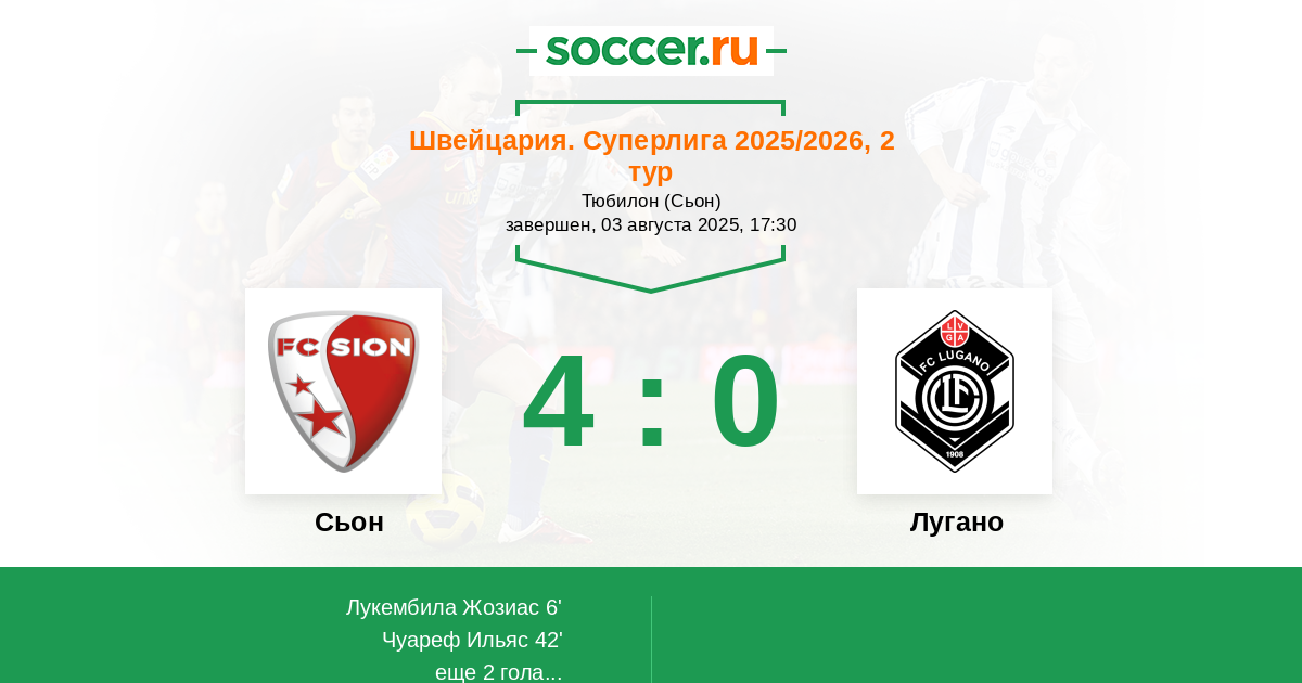 6' (1:0) Лукембила Жозиас (39) (Хефти Ниас (20))