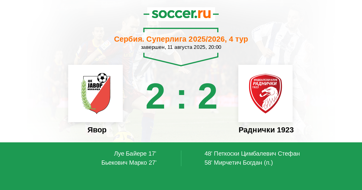 17' (1:0) Луе Байере (27) (Бьекович Марко (13))