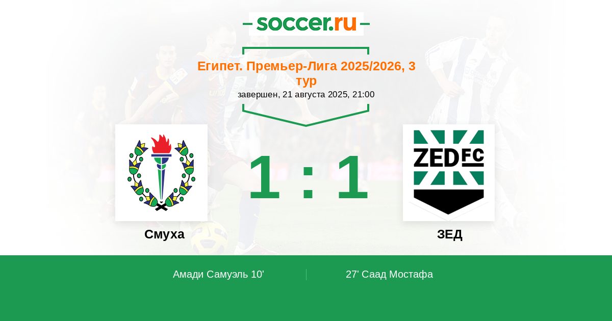 27' (1:1) Саад Мостафа (11) (Хуссейн Шади (10))