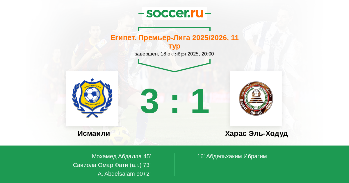 Запасные: 13 Шаабан Амр, 3 Эль-Бадри Махмуд, 11 Мостафа Мохамед (с 56'), 20 Эзе Эмека, 25 Ашраф Исмаил (с 87'), 44 Атеф Юссеф, 72 Тарек Зеяд (с 75'), 9 Гамал Амр (с 75'), 22 Савиола Омар Фати (с 56')