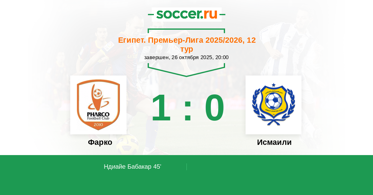 45' (1:0) Ндиайе Бабакар (33) (Эль-Тайиб Карим (7))