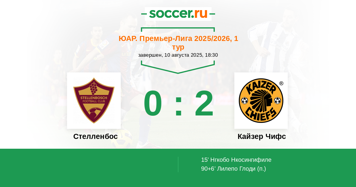 Запасные: 5 Мтетва Сибонгисени (с 46'), 9 Ду Преез Эшли (с 57'), 10 Сирино Леандро (с 75'), 8 Ндлову Сипшешли (с 75'), 28 Вилакази Мфундо (с 80'), 71 Нтвари Фиакр, 4 Мачеке Зитха, 39 Фрослер Рив