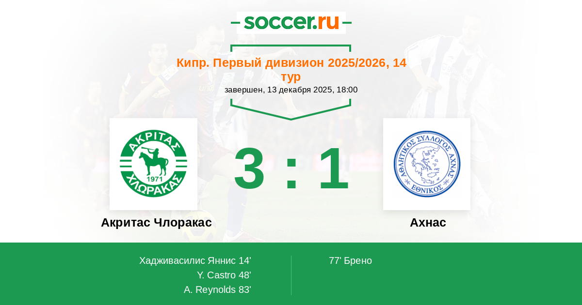Запасные: 88 Теокли Андреас, 99 Бекер Игал, 3 Генетлиу Ламброс (с 90+3'), 5 Антониу Кириакос (с 73'), 24 Дубов Никита, 29 Зинонос Нирчос (с 90+3'), 82 Ананг Бенсон (с 57'), 20 Риера Адриан, 22 Бенито, 4 Миллер Стефанос, 7 Тиерно