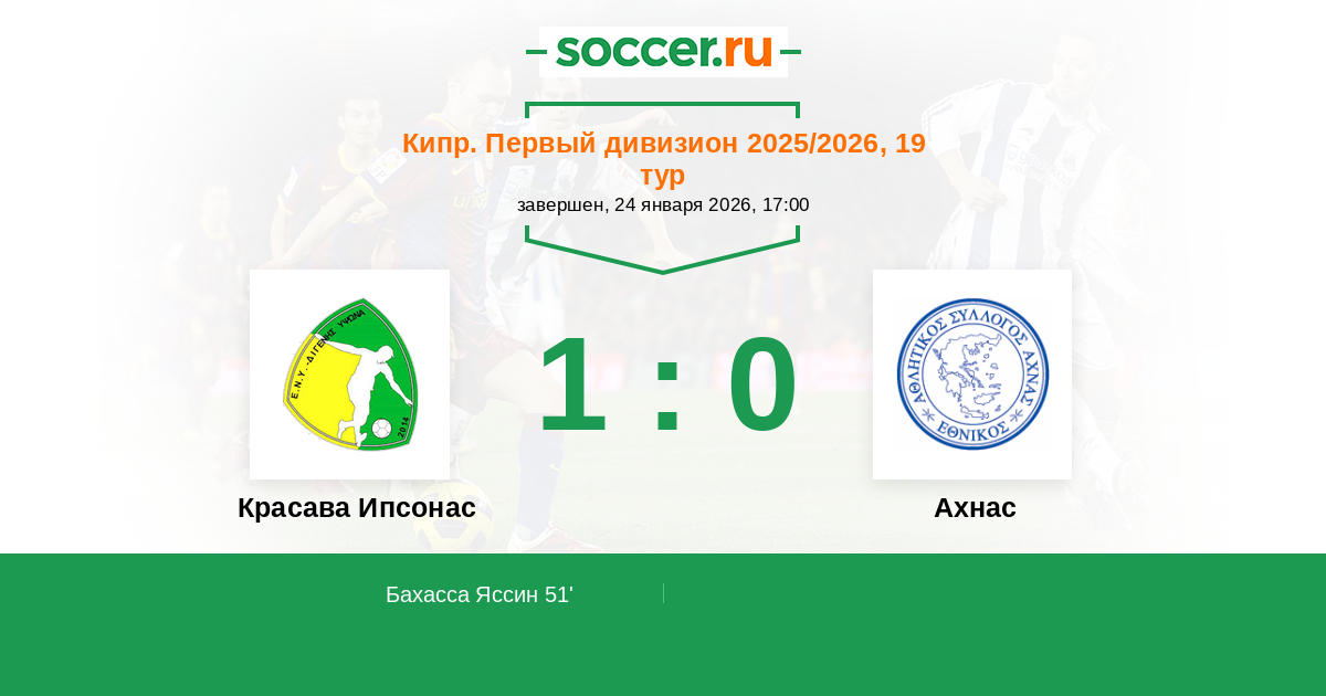 51' (1:0) Бахасса Яссин (28)