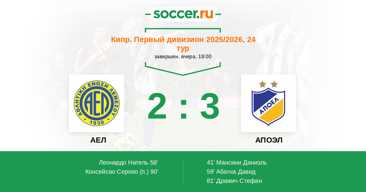 Запасные: 17 Абагна Давид (с 57'), 99 Олайинка Петер (с 77'), 5 Дегенек Милош (с 86'), 7 Майер Макс (с 85'), 10 Маркиньос (с 85'), 1 Перейра Габриэль, 22 Христодулу Андреас, 2 Антониу Эвагорас, 21 Пурсайтидис Константинос, 45 Гьяннаку Константинос, 38 Джоване Меуре, 36 Аппиа Чарльз