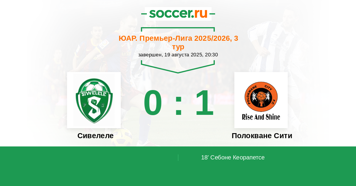 18' (0:1) Себоне Кеорапетсе (25) (B. Mnguni)