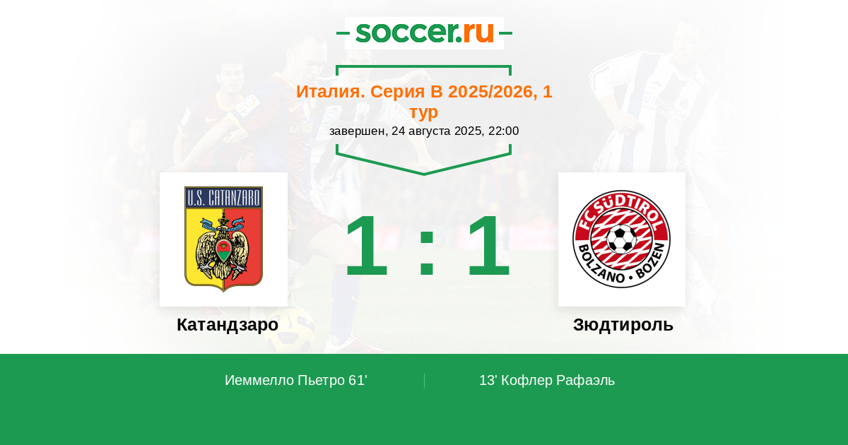 13' (0:1) Кофлер Рафаэль (28) (Казираги Даниэле (17))